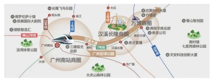 更重要的是,项目地处"万长南黄金走廊"的核心位置,左边是广州南站商务区(新鸿基ICC在建),右边是万博CBD(K11已试业),周边商业总体量超过百万方,形成一个堪比天河路商圈的繁华地带。