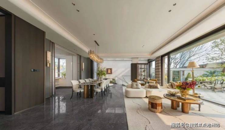 而在室内首层,中西双厨与客厅连成一体的奢阔的社交场。