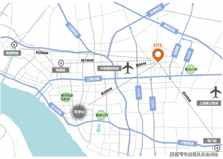 项目位于江苏省南通市通州区银河板块,距离南通市中心约20公里,距离兴东机场8公里,周边交通便利。
