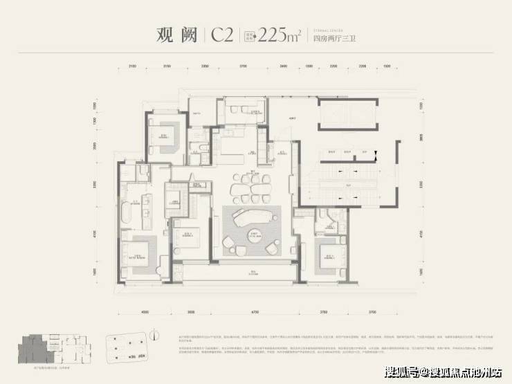 元起观潮府由4幢12-19F高层和3幢6F叠墅组成,叠墅分两叠、三叠两种类型,容积率2.3,高层户型面积约225-270㎡,叠墅户型面积约260-410㎡。