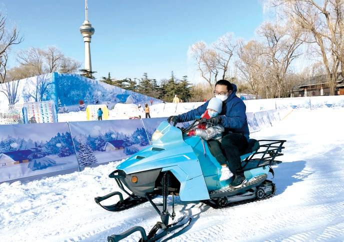 昨天,部分率先体验的游客走进玉渊潭冰雪乐园。记者看到,雪地乐园中人气最旺的是雪上飞碟项目,15条滑道坡道净长70米,不同的坡高坡长比例适宜各年龄群体参与,游客坐在飞碟上滑动前行,乐在其中。此外,不同型号的雪地摩托、酷炫的雪地小坦克、缤纷的雪地悠波球等互动项目让游客能深度体验雪上运动的乐趣。