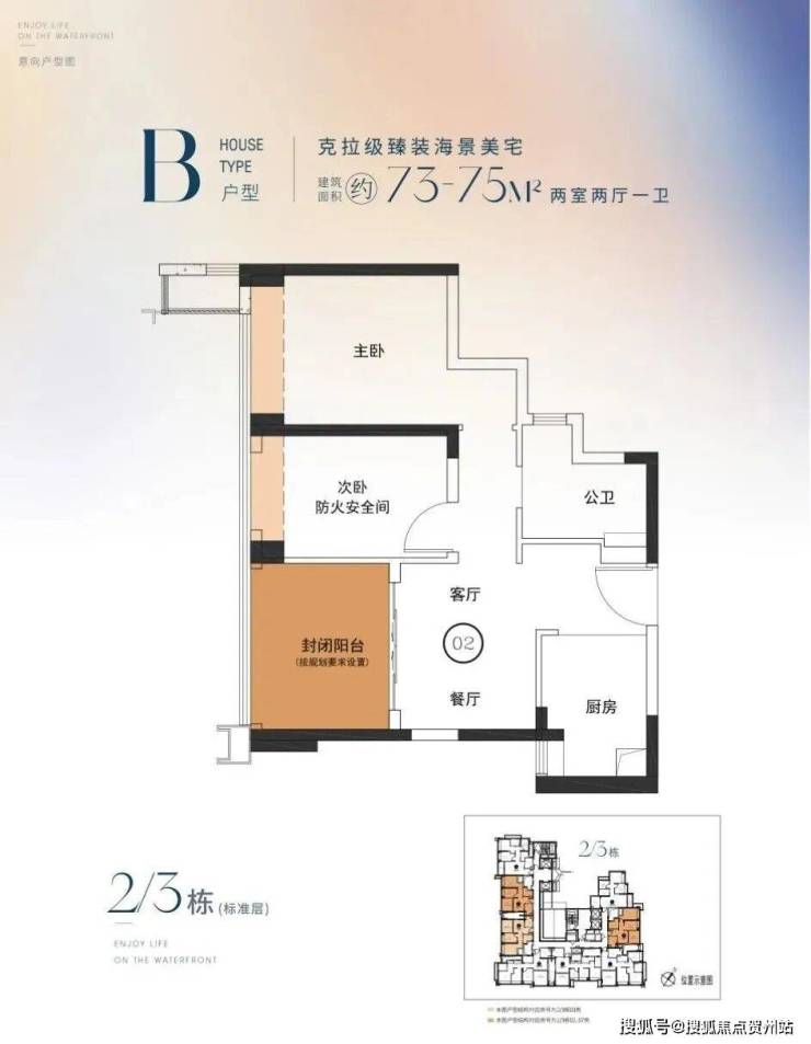 B戶型:73-75㎡,兩房一衛