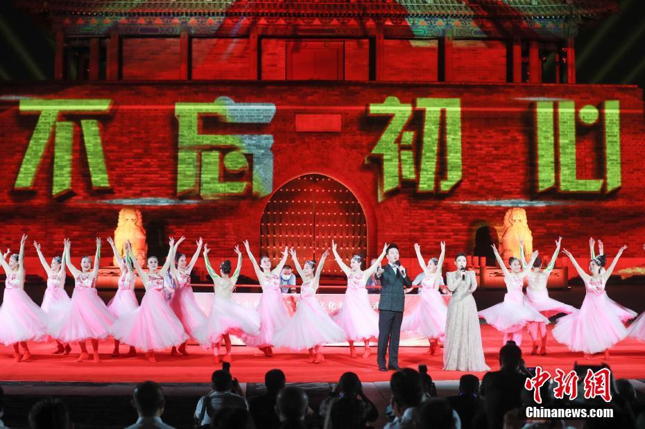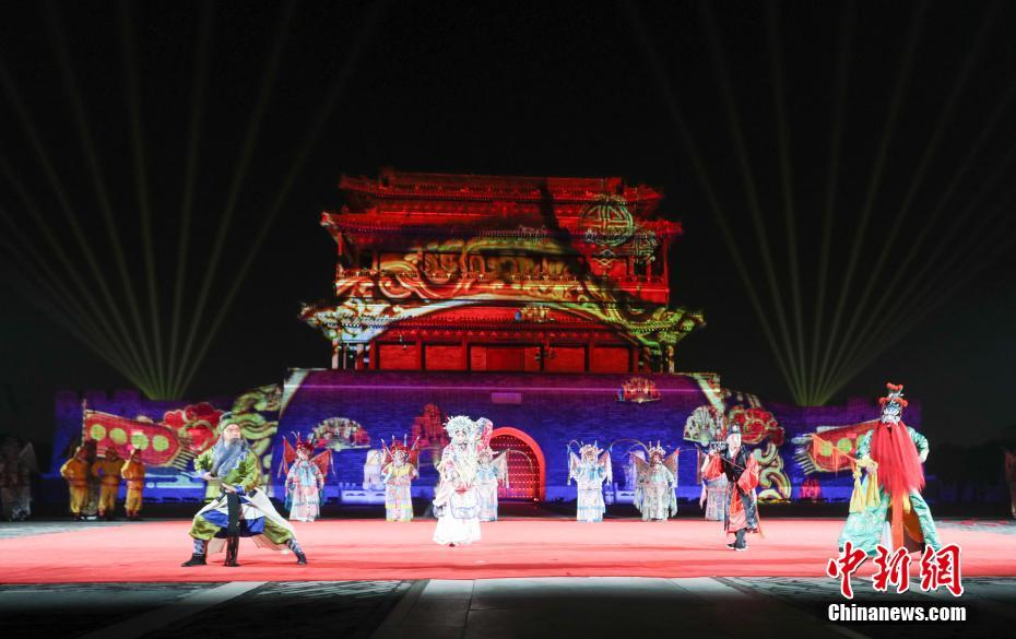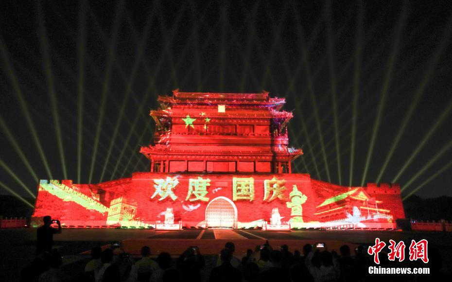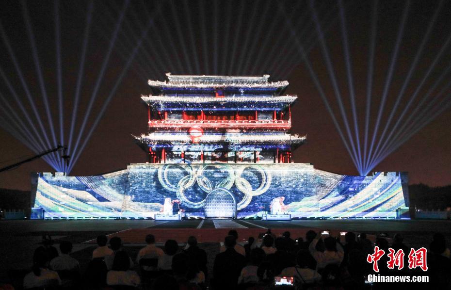 9月28日晚,北京永定门公园南广场,以“百年荣光 为国庆生”为主题的“中轴线上·永定门光影秀”活动正式上演。 中新社记者 贾天勇 摄