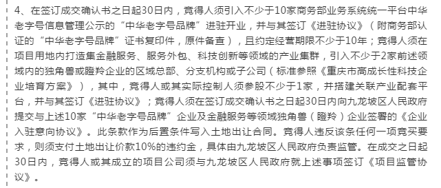 须引入不少于10家“中华老字号品牌”进驻并约定经营期限不少于10年;
