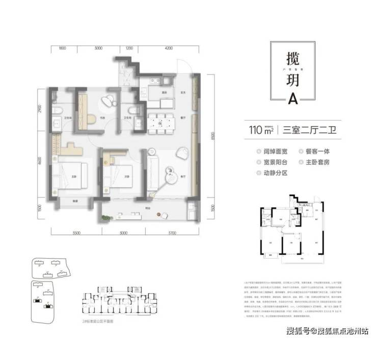 南向大面宽设计,三开间朝南,餐客厅一体化设计主卧套房设计风范彰显