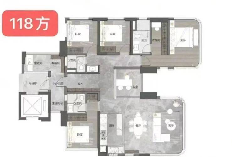 【云序丨建面约118-121㎡全景舱 五空间两厅三卫】