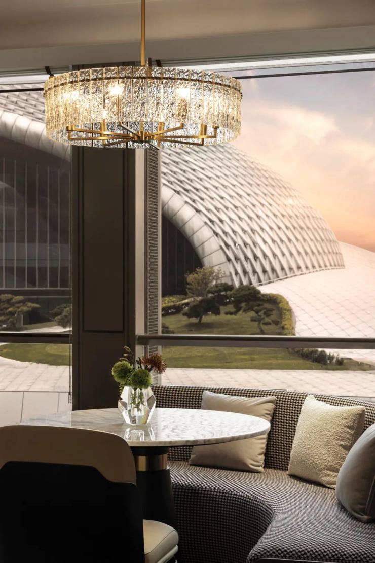 在天圆地方的入境中,感悟东方世界观的智慧,在非遗匠人手工绘制的 “浮雕金箔工艺墙”中欣赏穿越时空的手工艺术温度,在倾注着生活美学的云端花房中品鉴杭州的四季风景与人文雅乐