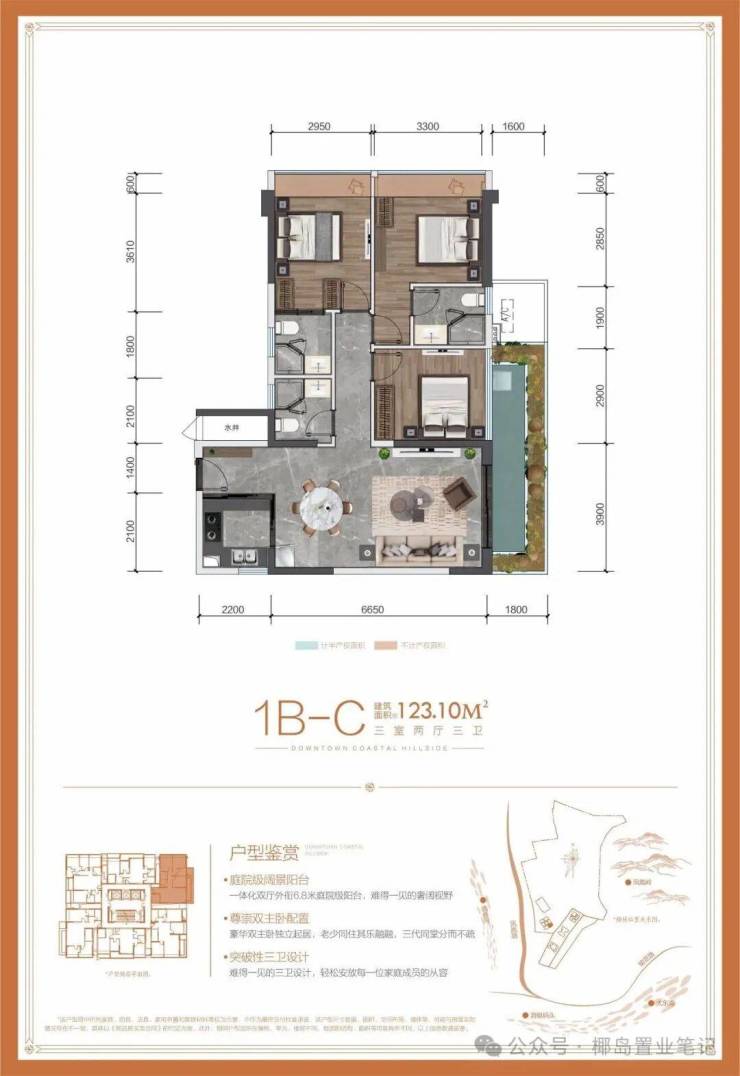 【C户型】建面约123㎡三室二厅三卫