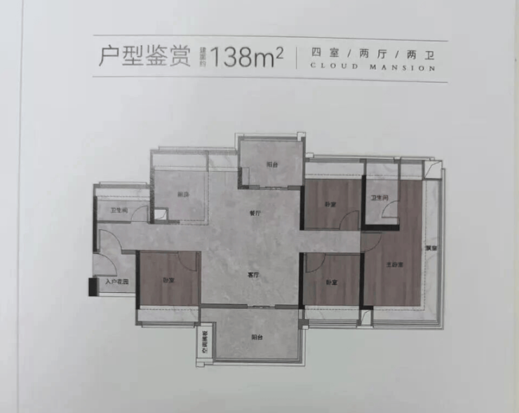 建面约138㎡四房则是大尺度改善之选,每个功能区尺寸都足够舒展,无紧凑感,双阳台形成景观与家政分区