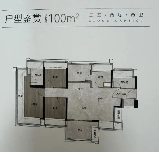 建面约100㎡四房紧凑高效,通过结构优化实现四房格局,入户花园设有收纳区,卧室集中一侧形成动静分区