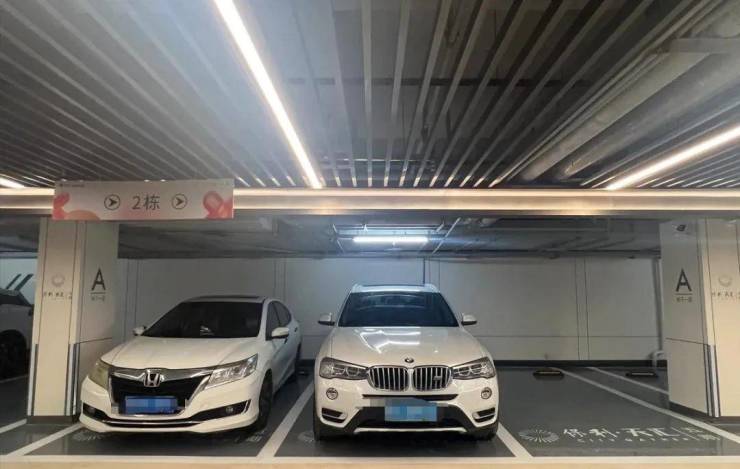 车位够宽,suv也比较好停,新手友好。车位地面都印上了项目LOGO,车位旁的柱体都有包边,且设在车门靠前的位置,开车门不会撞柱。