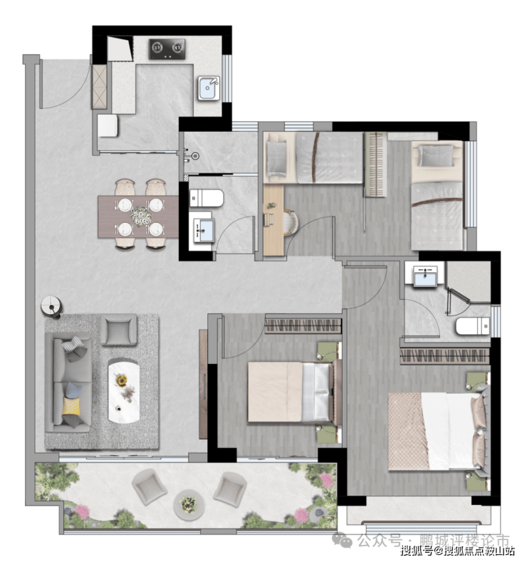 【86㎡3房2厅1卫】大面采光,全卧飘窗 阳光偏爱的空间L型厨房,动线流畅让烹饪更自在餐客一体,连通阳台 延伸生活逸趣主卧270°观景视野,私享自然风光