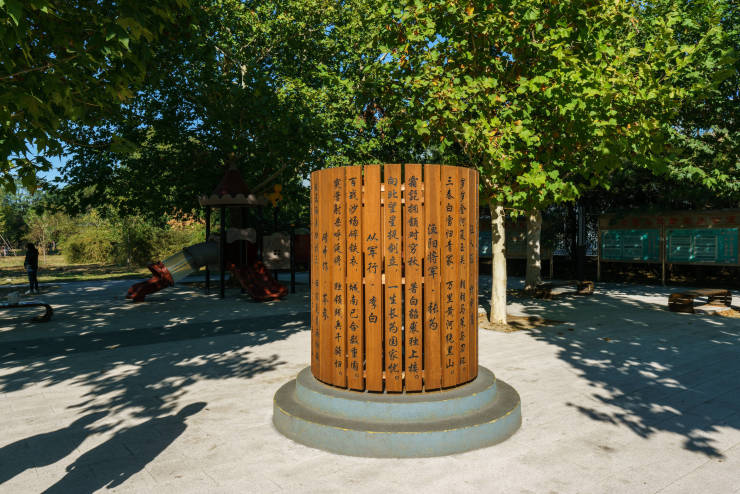 秦风建筑的“观礼轩”展现了渔阳古郡的风貌,休闲长廊里坐着三两成群的老人。靠近公园入口的位置是儿童休闲乐园,有一套组合型滑梯,孩子们在单滑梯、双滑梯、螺旋滑梯上攀来滑去。“我们小区里也有滑梯,但不像这公园里的滑梯有那么多样式。”带四岁的小孙子赫赫来玩滑梯的崔女士说。