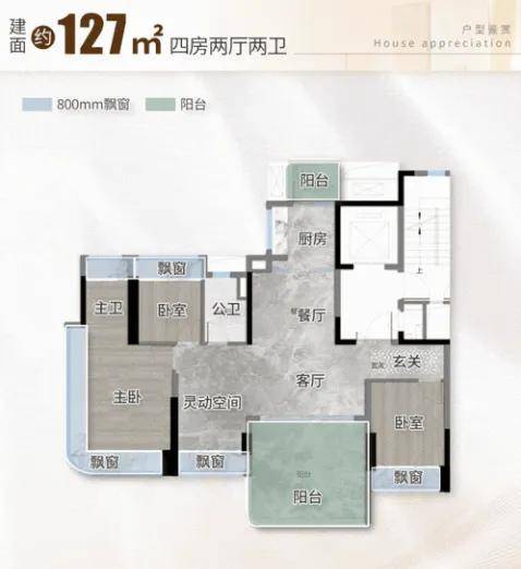 127㎡四房两厅两卫在空间利用上更显贴心,除了独立玄关外,还设计了双阳台,生活阳台放置洗衣机、收纳杂物,观景阳台连接客厅,闲暇时晒晒太阳、看看风景十分惬意。主卧带有大飘窗和独立衣柜位,居住舒适度提升不少。