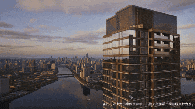 项目采用围合式设计,形成四象守护之势,既扩大了楼间距(为中庭园林预留敞阔空间),又有效减弱珠江强对流风。通过楼梯扭转和巧妙错位布置,近9成户型可享江景视野,最大化利用地块三边临江面宽。