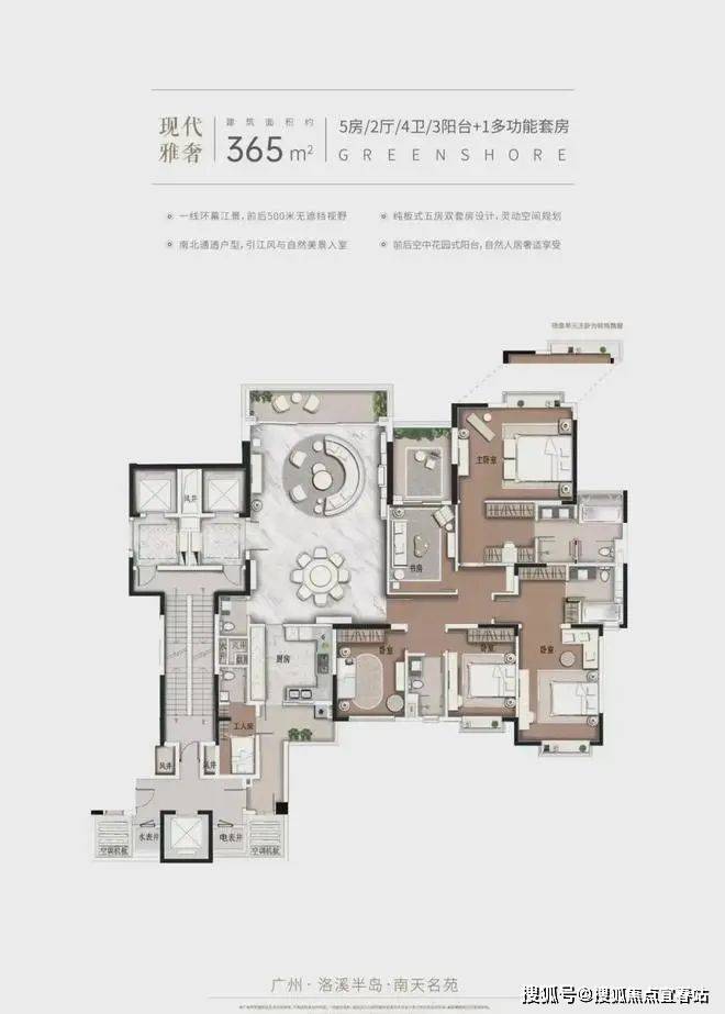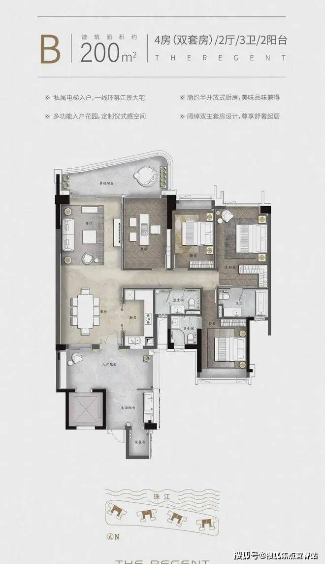 南天名苑项目位于洛溪岛的岛尖,是香港霍英东集团在广州城市中轴打造大型低密度岛尖江景豪宅,业主在室内可以近览三江汇聚的壮美江景,远眺CBD的繁华景致。
