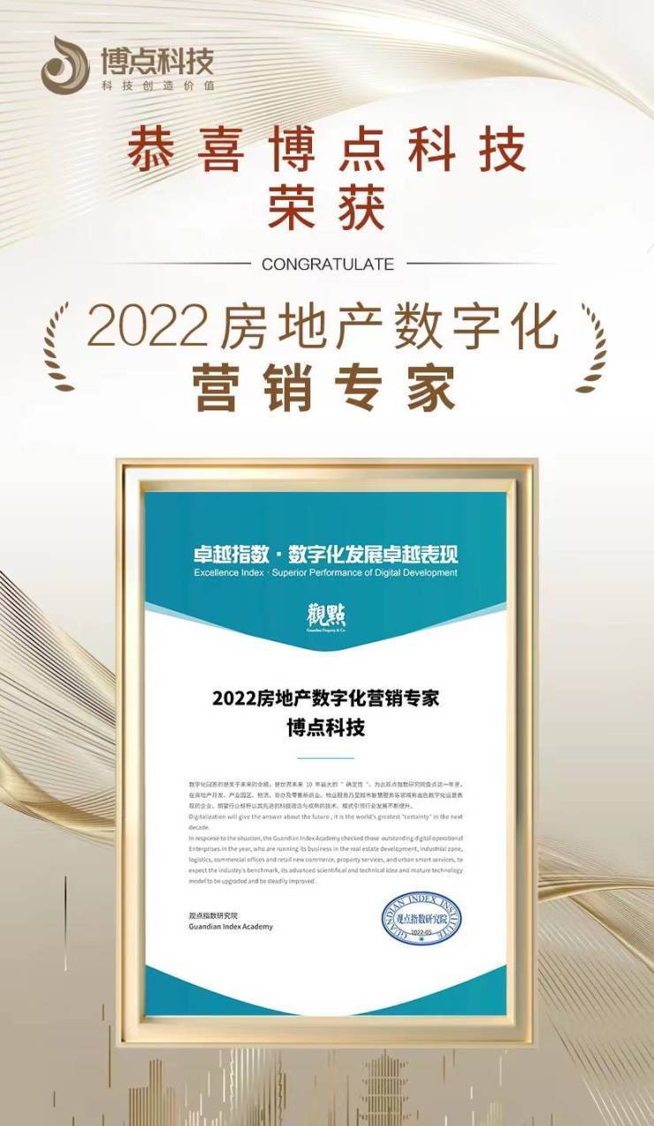 SaaS黑马突围!博点科技荣获“2022房地产数字化营销专家”称号
