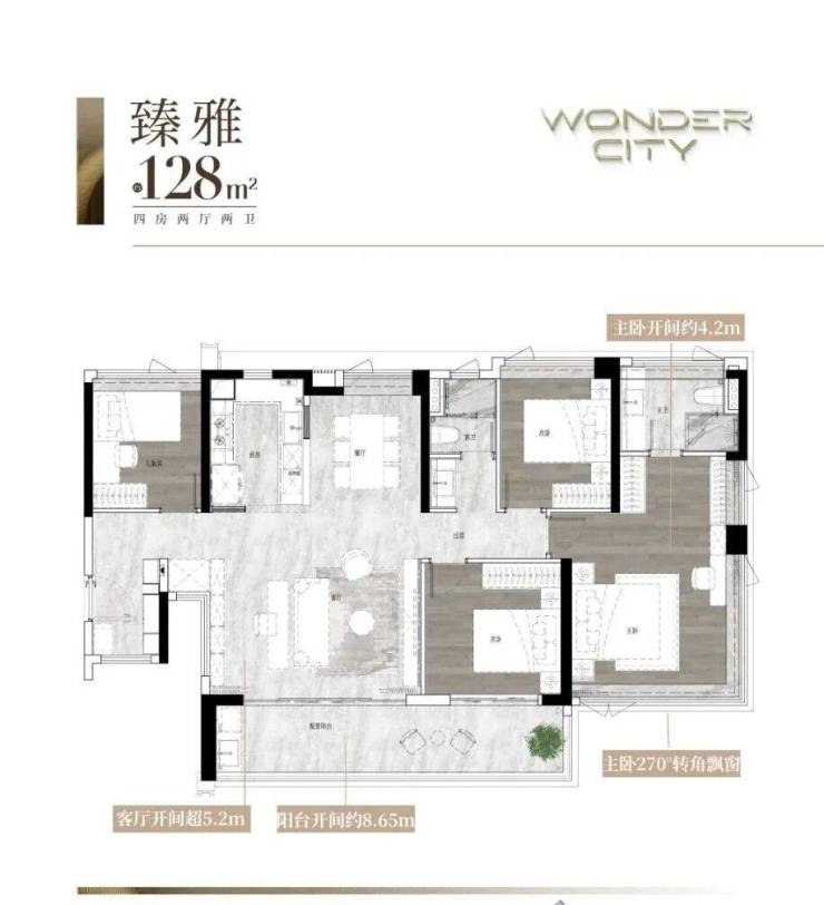 建面约128平户型,则在105平户型的基础上更强调共融:👇