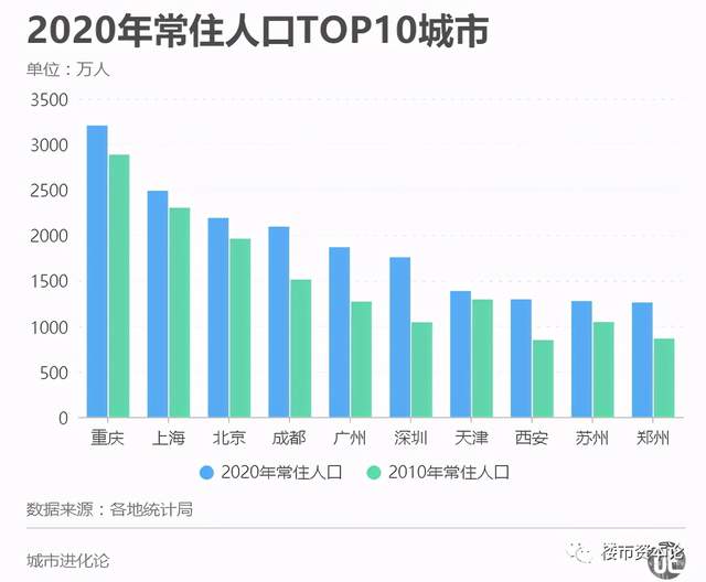 排在第8~10位的西安、苏州、郑州,同处1200万+梯队,其中,西安和郑州的人口规模不仅较2010年有大幅跃升,更力压武汉、杭州等明星城市,首度晋级全国十强。