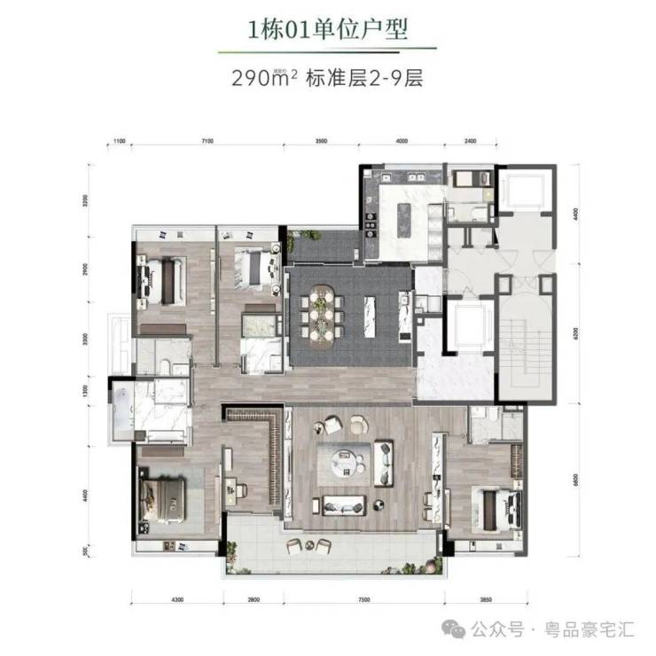 合景臻颐府不仅位置出众,小区的设计也非常前卫。项目容纳了17栋6-11层的小高层建筑,分为南北两排,仅设计了315户,主力面积为约200、260、290、320、350m²的大平层,另外还有少量约520~646m²的顶层整层特色户型,整个项目的居住圈层非常纯粹,起步门槛约1500万起。