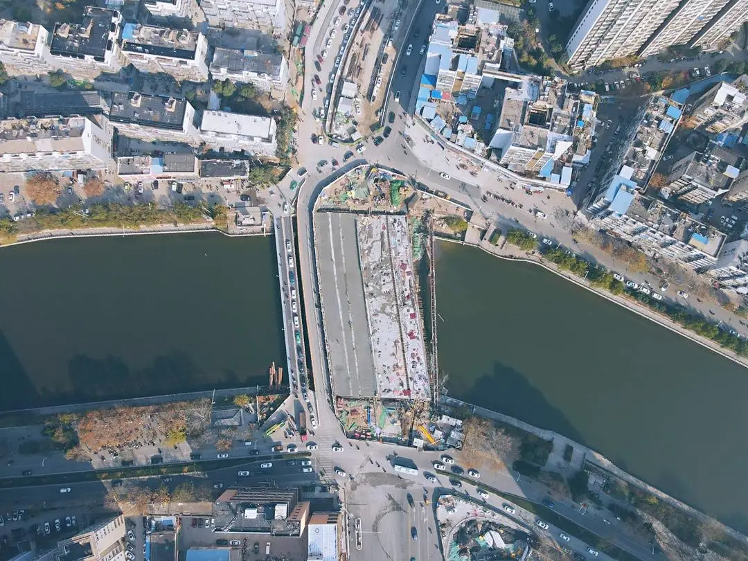 12月5日,位于鼓楼区坝子街与故黄河交叉处的解放北路黄河故道桥(坝子街桥)呈现出一番繁忙紧张的施工场面。