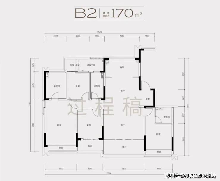 170方户型,是南厅139方户型的放大款,次卧多了一个套房空间。