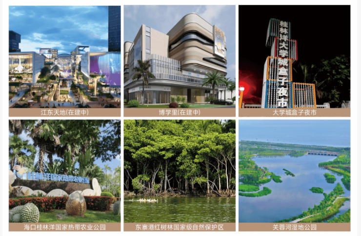 享海口桂林洋国家热带农业公园、东寨港红树林国家级自然保护区、芙蓉河湿地公园等天然资源,城市绿意氧护。