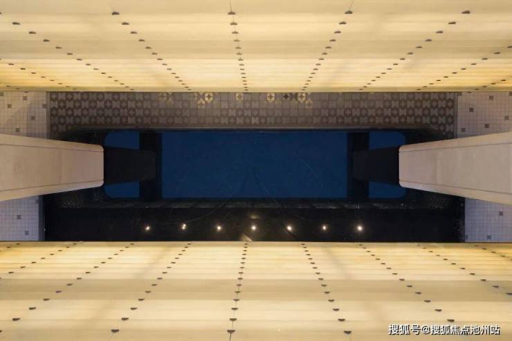 超大跨度的轻盈圆润飘顶,最干净纯粹的几何体块穿插,镶嵌着温润晶莹的玉石华盖。令人称奇的是,华盖下方镜面水系微澜泛起,映照着玉石摇曳着波光,不禁让人联想起白居易的那句“翠华摇摇行复止”---这华盖,“攀附”的可是唐明皇杨贵妃出入的尊贵礼序?