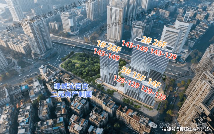 绿城·武汉沁百合规划共三栋住宅楼,其中,1号楼1个单元,共26层,户型143、150㎡;2号楼2个单元,共26层,户型143、143、143、129㎡;3号楼共2个单元,16/15层,户型129、129、129、129㎡,另外顶层复式面积为197、197、197、168㎡。