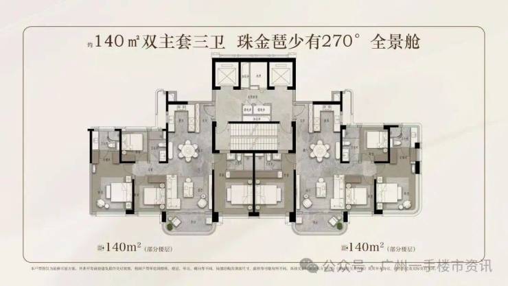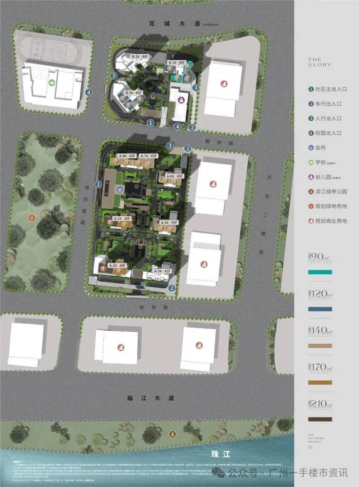 保利天曜南北两地块的住宅规划有所不同,南地块规划建设7栋板式大平层住宅,户型为140㎡、170㎡、210㎡左右的四房;北地块则规划建设3栋40层以上的超高层住宅,户型为120㎡四房和90㎡三房。
