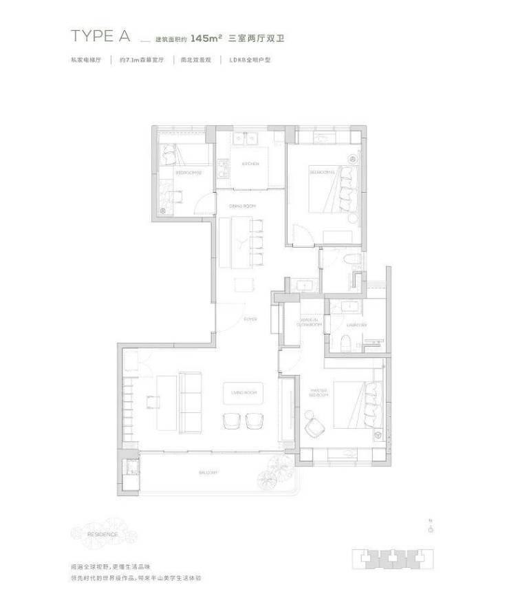 【145㎡户型】独享私家电梯厅-约7.1m²森幕宽厅-LDKB全明户型