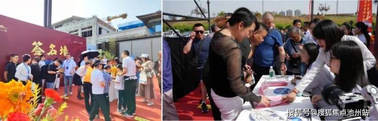 点睛结束后,领导们移步江山云起府门牌匾下,在主持人倒计时之后,共同揭开了江山云起牌匾幕纱。牌匾上红印、铜质的“金外滩·江山云起”7个大字赫然现世,同时绚丽的彩烟腾空升起,现场响起了热烈的掌声和欢呼声,共同庆祝并见证了江山云起营销中心暨景观示范区盛大开放这一历史时刻。