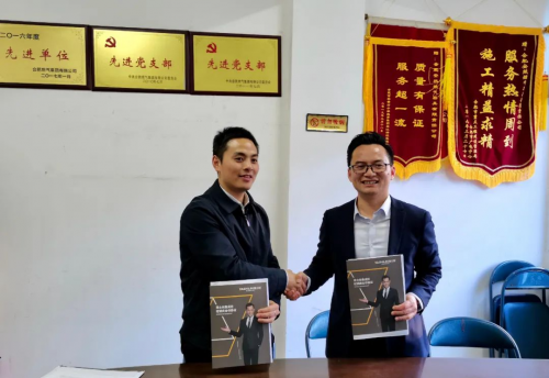 合肥安然燃气器具经理刘斌与雅士林集成灶总经理杨光签署合作协议