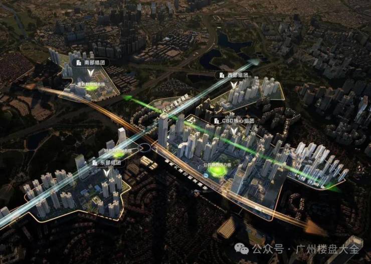 整个万博城大致可以分为4个组团,每个板块特性不尽相同:CBD组团、东/西部组团、南部组团三部分。