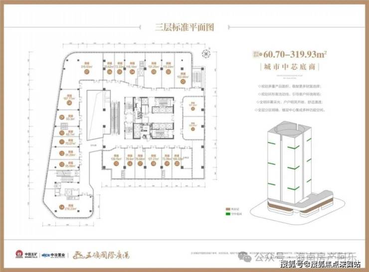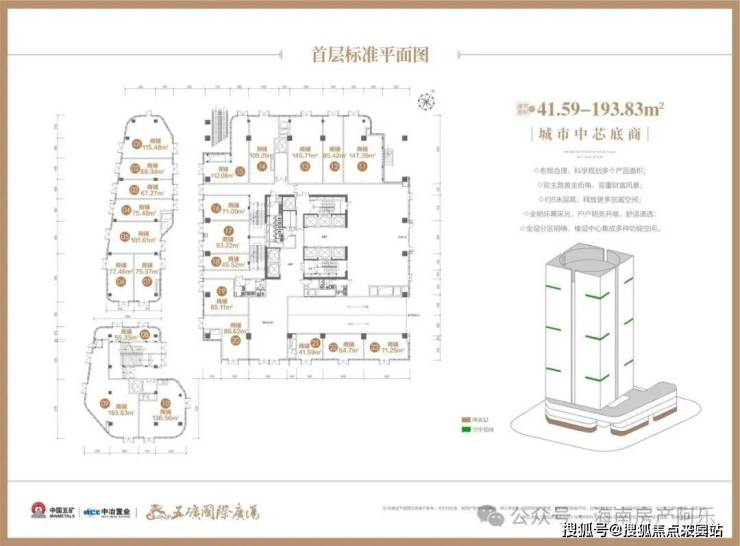 项目1-4层为凝聚时尚购物、餐饮娱乐于一体的城市综合性商业广场,产品面积段覆盖42-320㎡的城市中芯底商,首层层高高达六米,未来将成为三亚商业消费的新核,为城市精英提供全面多彩的都会商住生活。