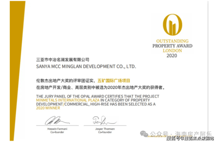 五矿国际广场,荣获“2020年杰出房地产大奖”。项目满足美国绿色建筑LEED金级标准预认证与中国绿色建筑二星双重认证,奢装智能新风系统、智能高速电梯等智能化商办配套,领创自贸智能商办新标杆。