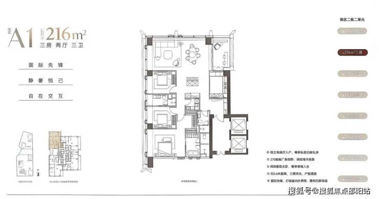 • 户型209㎡起纯大平层,实用率92%+,3.6米层高、270°环幕落地窗