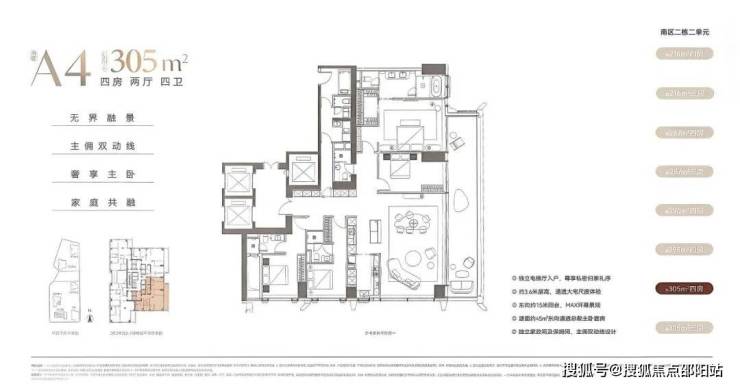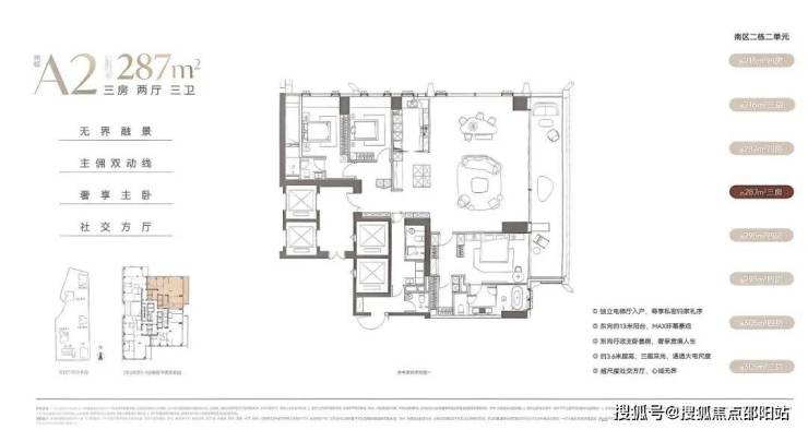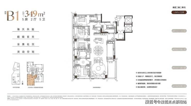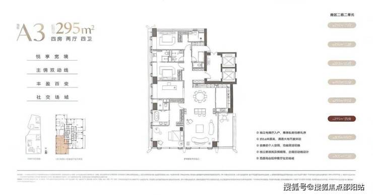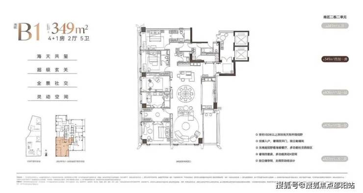 深圳湾沄玺二期(南区)首推2栋2单元,由216㎡-287㎡-295㎡-305㎡-349㎡-427㎡-409㎡这7种户型组成,以下是户型图:
