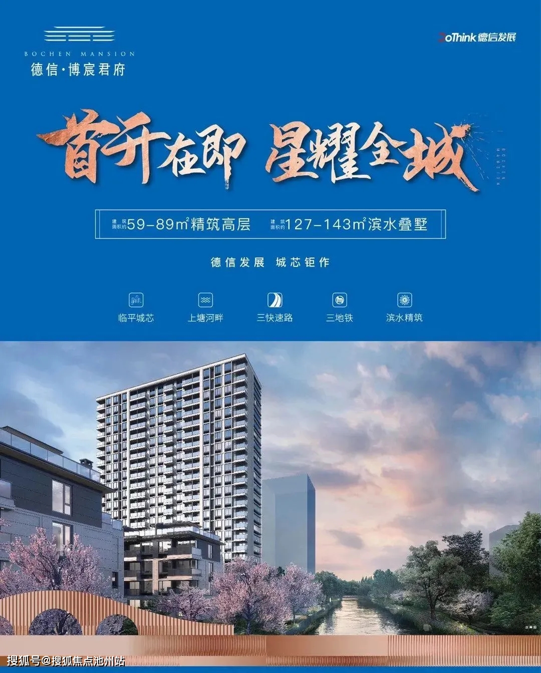 德信·博宸君府,总建面积约7.3万㎡,由建面约59-89㎡滨水精装景观高层,及建面约126-145㎡一线滨水叠墅组成,于蓬勃发展的城芯区域,匠筑临平市面罕见的叠墅作品。周边土地已然难求,叠墅产品的价值稀缺众所周知,德信·博宸君府占位城芯的最后热土,将与时代临平共同升级,再攀价值高峰,用深耕城市的匠心,呈现斐然时代的杰出作品。
