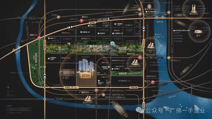 广东实验中学荔湾学校第三小学部(简称“省实三小”,将于今年9月开学);项目自身配建2所中小学,其中一间已确定为省级名校:广东省实验初中;板块将形成32所学校集群。