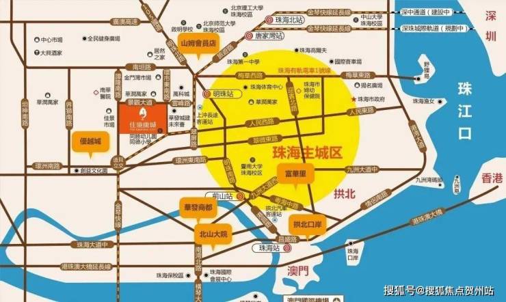 项目位于香港、珠澳、中山黄金三角的核心,相当于雄踞港中珠澳这座“超级大城”的中心,有着先天的区位优势,且直线距离港珠澳大桥入口、拱北口岸、横琴口岸,均在10公里左右。
