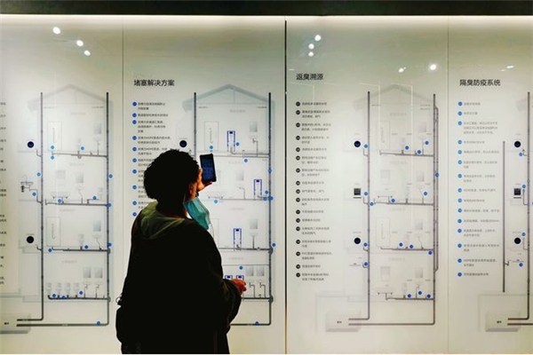 针对百姓日常生活中不时遇到的卫生间“返臭”“堵塞”等问题,邦吉威卫浴竭力打造出问题成因与解决方案对比墙,对这系列问题进行溯源与分析,并通过先进的设计、优质的产品和专业的安装提供全方位的解决方案。