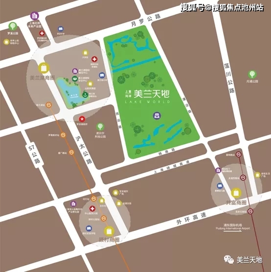 ·轨道交通 1轨(7号线美兰湖站)、1脉(沪太路)、5高速(S7、S20、G1501、S5、S6)