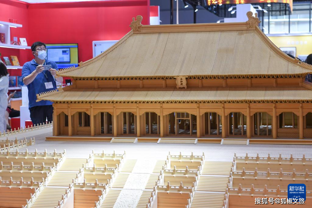 9月23日,参观者在第十七届文博会上观看太和殿模型。新华社记者 毛思倩 摄