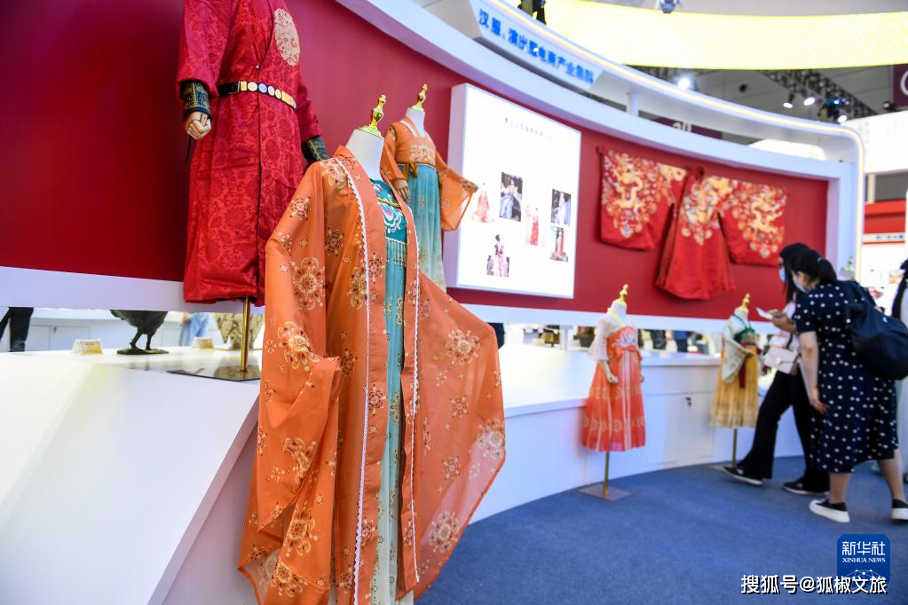 9月23日,参观者在第十七届文博会山东展台了解曹县相关企业制作的汉服。新华社记者 毛思倩 摄