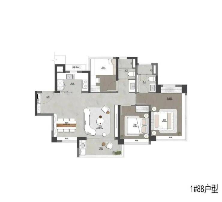 项目的主力户型为80+㎡、90+㎡、100+㎡、110+㎡和130+㎡的三至四房产品。四房户型占据了项目的80%左右,满足不同家庭的需求,且每个户型的使用率可达115%,相当高效合理。