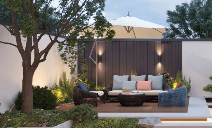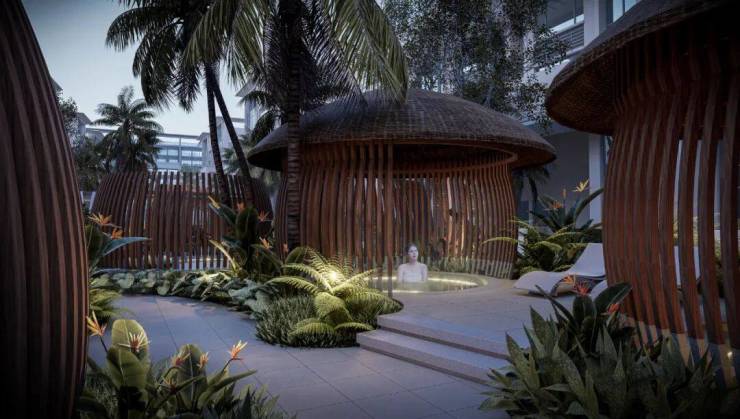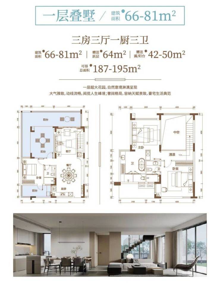 打造「地上院落 + 空中露台 + 私属空间」三重立体格局。晨起在庭院栽花种草,午后于露台品茗会友,入夜在星空下泡池观星,垂直生活剧场里,每一层都是独属的生活诗篇。