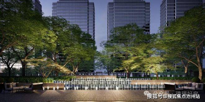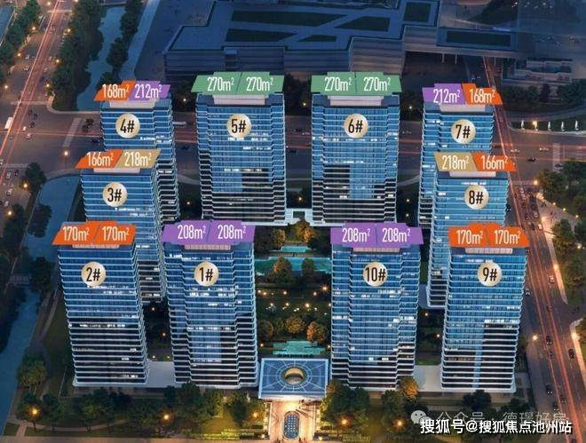 整体规划T2点式大围合布局,实现超万方围合大中庭、最大超百米楼间距等设计巧思。
