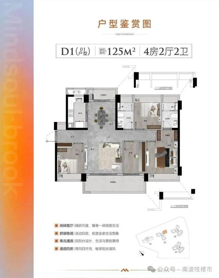 2号楼:2梯3户125平,126平,128平