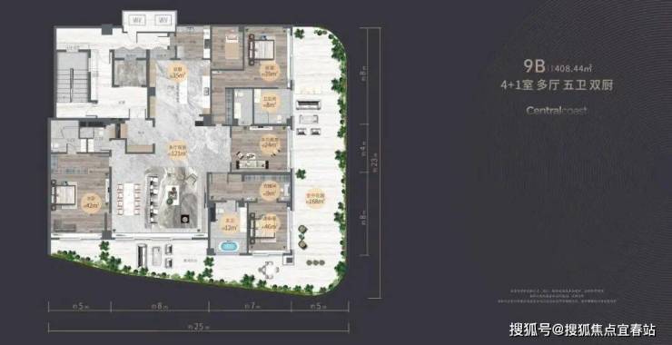 9B 【408.44㎡ 4+1室 多厅 五卫 双厨】